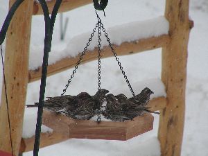 Research has shown the black oil sunflower seed is one of the preferred foods for many wild birds. (Cheaper mixes often contain a lot of filler seeds, such as milo, flax, canary seed, and wheat, which wild birds tend not to eat, making them less of a bargain). You can purchase a tube feeder at a reasonable price and fill it with sunflower seed to attract finches, chickadees, Pine siskins and others. Juncos and jays prefer to feed on the ground, and will feed on seeds that have fallen from the tube feeder, or you can sprinkle seed on the ground especially for them. Be aware that this practice might also attract squirrels, chipmunks, rabbits, and even the odd coyote. A raised platform type feeder can limit the number of coyotes and rabbits, but you’ll need to buy a special feeder to keep out the squirrels. Seed used for this type of bird feeder includes cracked corn, peanuts, and sunflower seeds.